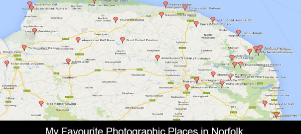 The map below shows my favourite photographic places mainly in Norfolk, however, recently I have started to explore much further